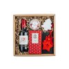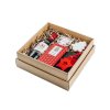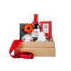 Darujte darčekovú krabičku s červeným vínom, vianočnou čokoládou, sójovou vianočnou sviečkou, powerbankou, drobnými ozdobami a domácim medovníkom.
