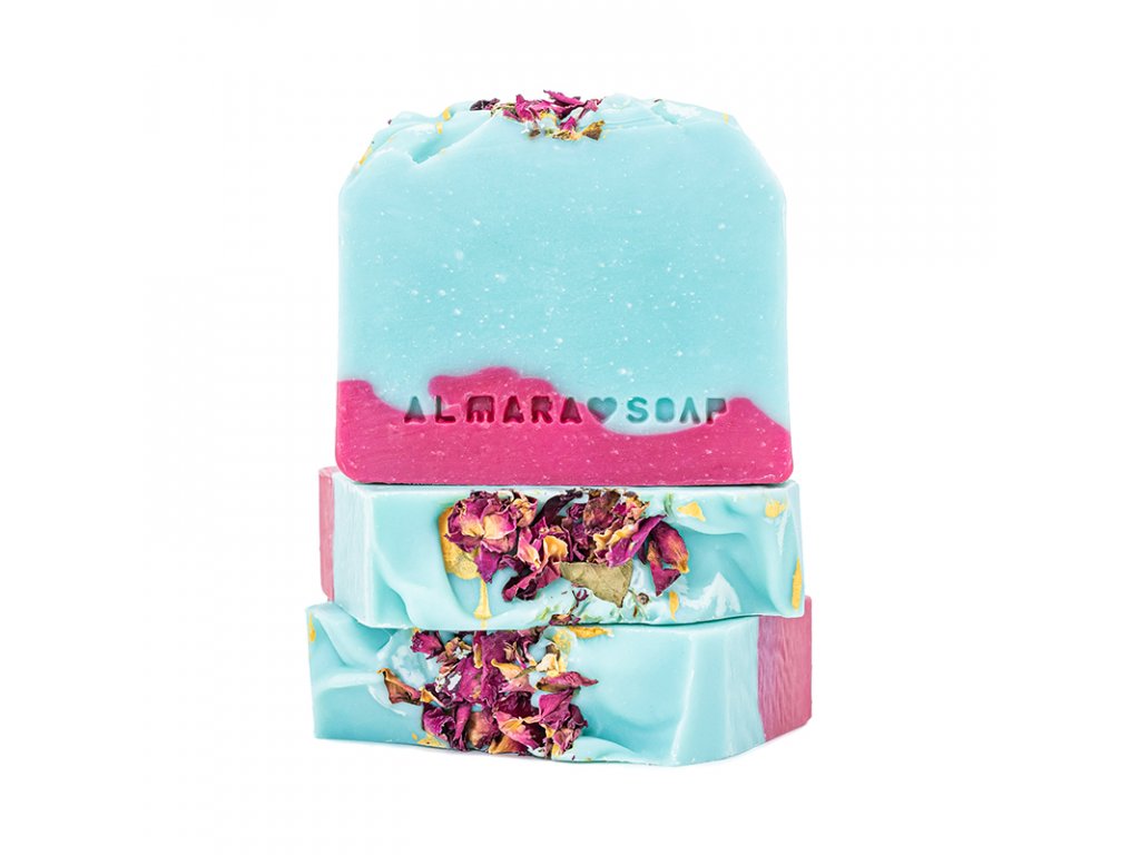 Mydlo obsahuje vysoké zastúpenie rastlinných olejov, ktoré pokožku vyživí a zaručí tak veľmi jemné a hebké umývanie. O krásnu farbu mydla sa postarali minerálne farbivá, oxid zinočnatý a zdobenie ružovými kvetmi.