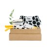 Pohodlné trenírky v bodkovanom dizajne, veselé ponožky, chutná čokoládová tyčinka a dizajnové ručne robené so sviežou korenistou vôňou pre perfektný deň.