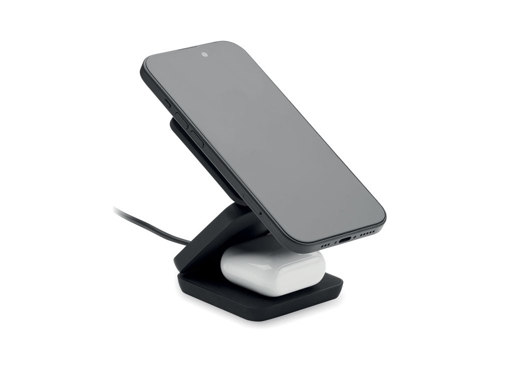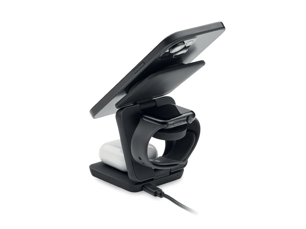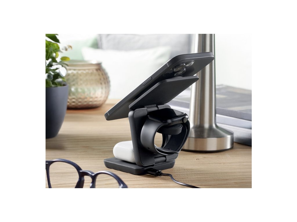 Majte všetko pod kontrolou – s touto kompaktnou 3 v 1 nabíjacou stanicou z gumeného recyklovaného ABS získate štýlové a udržateľné riešenie pre každodenné nabíjanie. Stanica obsahuje:
